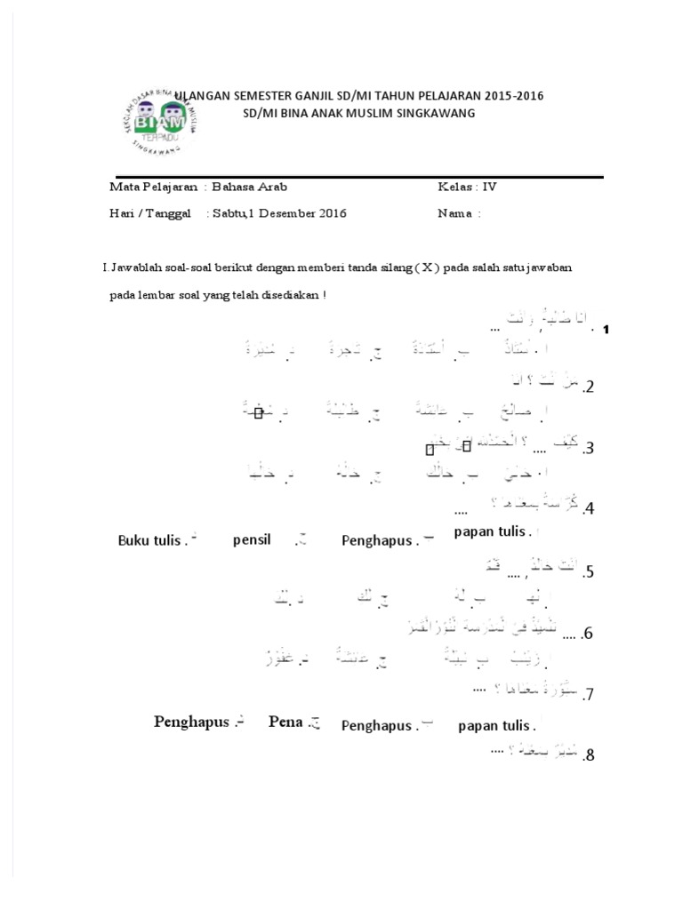 Soal yang efektif tidak hanya mengukur pemahaman siswa, tetapi juga berfungsi sebagai alat pembelajaran yang memotivasi dan memfasilitasi penguasaan materi. Artikel ini akan membahas secara komprehensif bagaimana merancang soal Bahasa Arab yang relevan dan efektif untuk siswa kelas 4 SD, lengkap dengan contoh-contohnya.