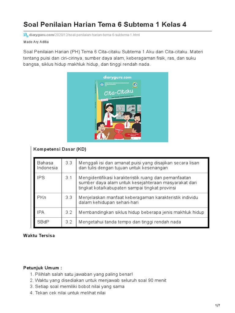 Berikut adalah contoh soal beserta pembahasan mendalam yang mencakup berbagai mata pelajaran terkait Tema 9 Subtema 1 Kelas 4.